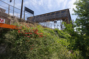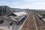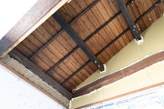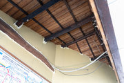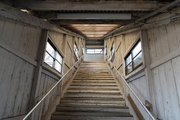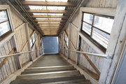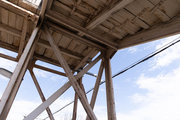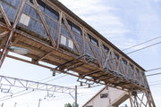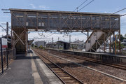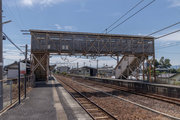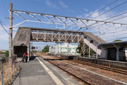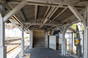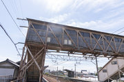 木造の跨線橋、明治31年設置、その後、古レールなどの鋼材で補強されている。