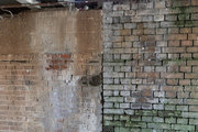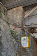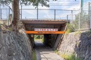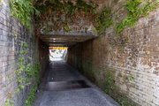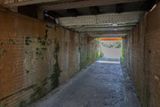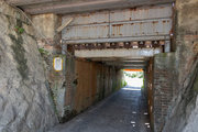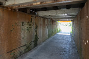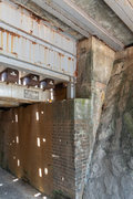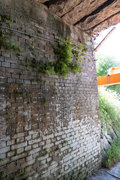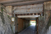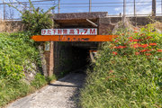 北側の線路の下を通る道路の壁はレンガ積みで、これも開業当時の遺構。