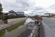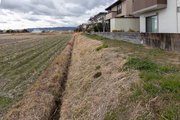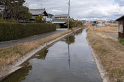 稗田の北端にまわり、佐保川に対する従前よりの堤防であった請堤の跡を確認しました。環濠集落は、請堤との組み合わせで15世紀以降の奈良盆地の地表上に登場した可能性があり、稗田の環濠は、防衛機能はもとより、洪水時には排水処理機能、平常時には生活用水機能というように、多義的な機能を有していたと考えられます。