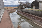 郡界橋を過ぎると川はやがてゆるやかに蛇行し、左岸(東岸)に広がるのは、中世の村落の名残を