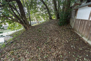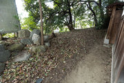 十二社神社に残る土塁の痕跡。環濠を掘った土は防御性を高めるため、濠の横に積み上げられた。