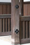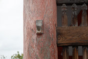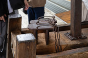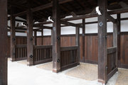 馬の手綱を繋ぎ止めるための鉄製の輪環が取り付けられているが、奥から3本目の柱の下の輪環だけが下向きになっている。なぜかまったく不明。