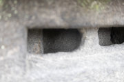 随求堂(ずいぐどう)の前庭に、不格好な石灯籠があり、その石灯籠の火袋の中に線彫りの小さな観音像が祀られている。