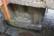 実は、手水鉢の台座の下の四方に4羽のフクロウの姿が刻まれている。