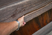 本堂裏の側面の木の目に沿って、2cmほどの深さの溝が真っ直ぐに付いている。これは「弁慶の指跡」と呼ばれて、弁慶が人差指で付けた傷だとされる。