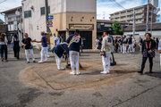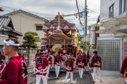 やぐらを撮影するため、泉南市の樽井に行きました。樽井の秋祭りは4台のやぐらが運行されますが、やぐらが大きいのが特徴です。他の地区ではやぐらに付いている太鼓を叩くのにやぐらと一緒に走りながら叩いていますが、樽井ではまた、江戸時代から続く「講」がやぐらを運行するのも他と異なっています。