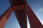 八幡区と洞海湾を超えて若松区をつなぐ若戸大橋。鉄板を溶接でなく数多くのリベットで接合しています。東京タワーと同じような工法です。