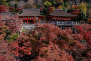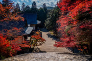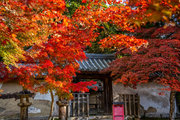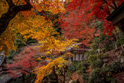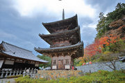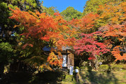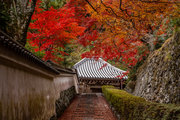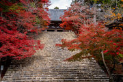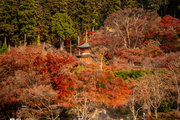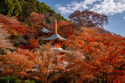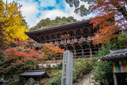平日だからか人が少なく、金堂前の石段でも無人の状態で撮影ができました。紅葉風景を堪能できました。