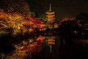 職場の方から招待券を戴いて訪問しました。6時の開門時には行列ができていたそうですが、7時30分頃に行ったら待たずに入場出来ました。池に映る紅葉と五重塔が美しかったです。