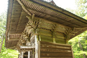 拝殿の繋虹梁を丸彫りの竜とし、本殿の尾垂木を雲形とするなど、一部の構造材が彫刻化しているのは、同種の遺構の中では早い例とされます。