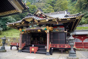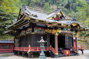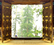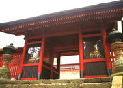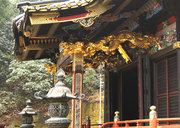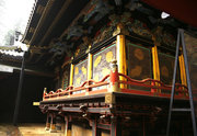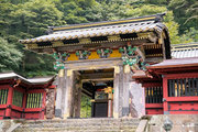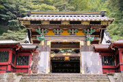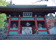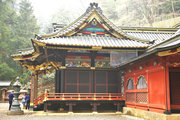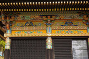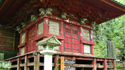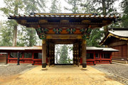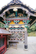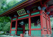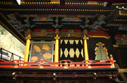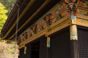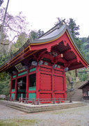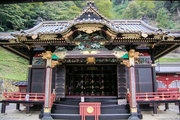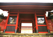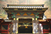 ■唐門 国重文 建立:宝暦6年( 1756) 桁行一間、梁間一間、平唐門、銅瓦葺 随所に彫刻を付け、全面に漆塗り、彩色を施した華麗な建物です