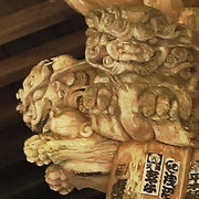 □正面妻飾は大瓶束、左右に麒麟の彫刻