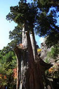 高さ30メートル以上、樹齢500年以上の巨木。国の天然記念物。武田信玄が戦勝を祈願して矢を射たという伝説が残っています。