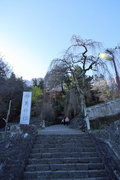 石造の太鼓橋を渡ると、上部神域へと一直線に延びる百六十五段の石段があります。これを登り切ると神域の入り口に随神門があります。