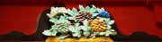 虹梁中備えと唐破風虹梁上の妻飾り 松に鶴の彫刻 錺金具
