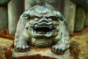 ■二の鳥居 県指定 銅造明神鳥居 柱の根元に意匠があります 四面に獅子の像