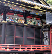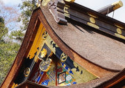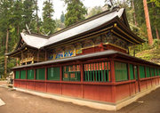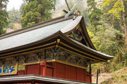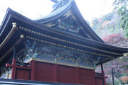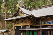 神社の中心の本社・幣殿・拝殿は、精緻な彫刻と濃密な彩色が全体構成と見事に調和した権現造の複合建築です。