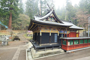 唐破風造の神楽殿、軒唐破風や彫物の装飾性に富んだ双龍門や随身門など、江戸時代後期の北関東を代表する優品です。