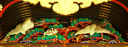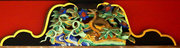 □身舎の軒先の欄間や蟇股にも多くの彫刻が配されています 手挟には極彩色の雲の彫刻 縁側の脇障子は「竹林の七賢」の彫刻