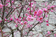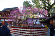 相変わらず中国語や韓国語ばかりが飛び交う人混みだが梅花を見るには混みすぎということでもない。工事中の拝殿前の飛梅は満開近い感じで拝殿の背後に広がる梅林もそれなりに咲いて綺麗だ。ほぼ満開の木もあればまだまだの木もある。ソメイヨシノのように一気にそろって満開になるというのではなく、こんな咲き方のほうが何だか自然で気持ちがいい。