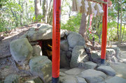 一番奥の天開稲荷神社まで行って一回りしてみる。ここは鎌倉時代末期に京都の伏見稲荷大社から勧請され、九州最古のお稲荷さんといわれてきたようだ。鳥居の列の石段を上がると奥の院があって古墳の石室のような形をしている、これは古そうだ、古墳時代まで遡りそうにみえる。ここにこの天満宮のもとになった神社のそもそもの原点があってそこから天開稲荷も天満宮も形つくられてきたのではないか、そう思わせる。