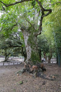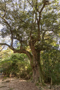 ① 一之鳥居近くのイチイガシ、