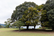 鹿苑の入り口近くで、幹周4.9m樹高24mと幹周5.0m樹高29m。
