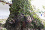 ナギはすらりと真直ぐに伸びて、樹皮が丸く剥がれるので、見分けやすい。ここまで古く大きくなると判定が難しいが、よく見ると樹皮に特徴が表れている。幹周3.3m樹高13m。