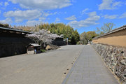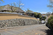 石垣と塀が連続する落ち着いた街並。