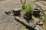 坂脇の小さなスペースに植えられた花