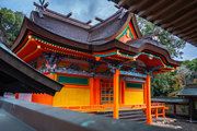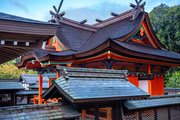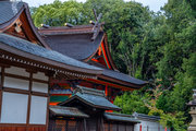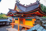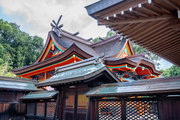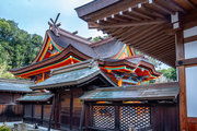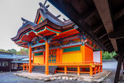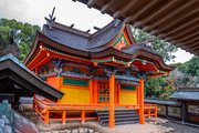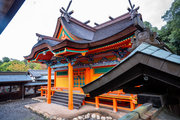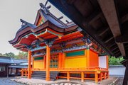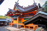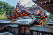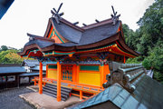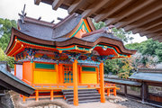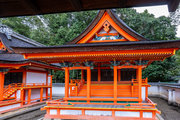 一間社春日造、正面軒唐破風付、檜皮葺