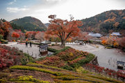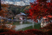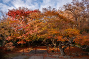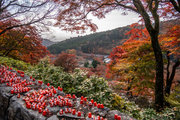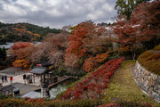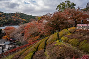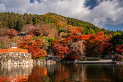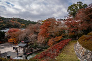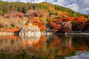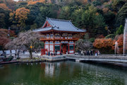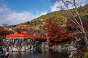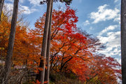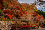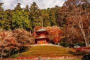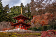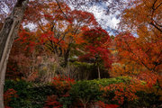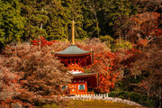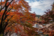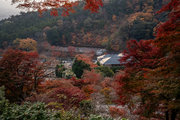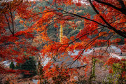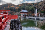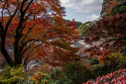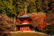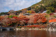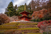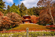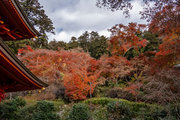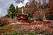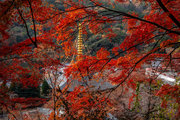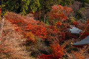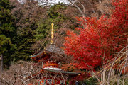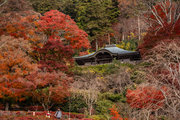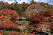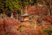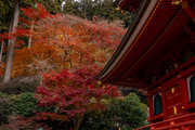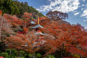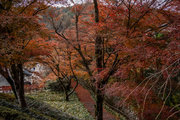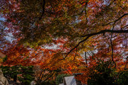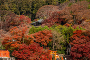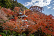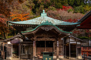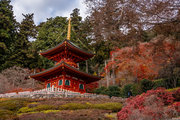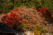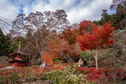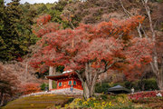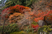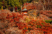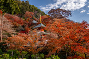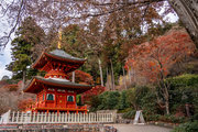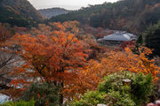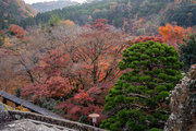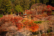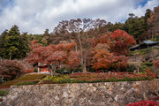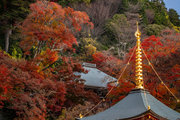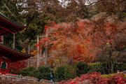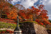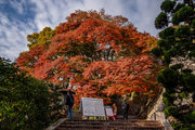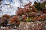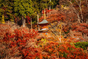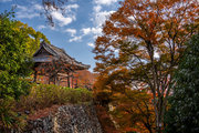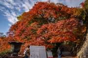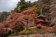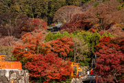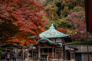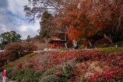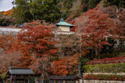 応頂山 勝尾寺撮影日: 2012年12月1日神亀4年(727年)善仲・善算が草庵を構え、開成皇子が弥勒寺と名付けました。第六代座主・行巡の時、清和天皇から「勝王寺」の寺号を賜りましたが、弥勒寺側は王を尾の字に控え、以来「勝尾寺」と号しています。粟生新家からの旧参道には寺までの距離を示す我が国最古の8基の石塔(町石)が現在も残っています。西国23番札所、法然上人第5番霊場。(箕面市HP 箕面の史跡と文化財より)秋には紅葉の名所である。今回の撮影時には盛りをすぎていたが、下の山門から見上げても、最高部の二階堂から見下ろしても、なかなかの眺望である。