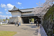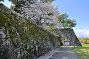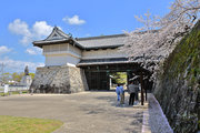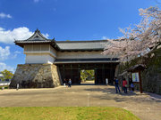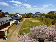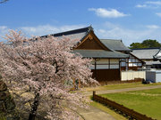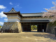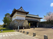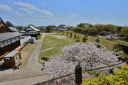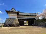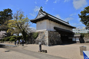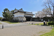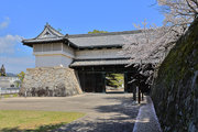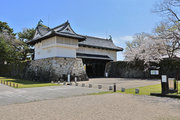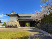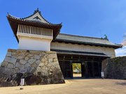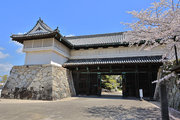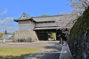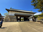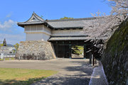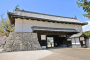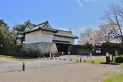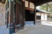 門両脇とも武者格子付番所及び式台、櫓二・三階は続櫓と連絡し続櫓二階西部は三方出格子