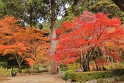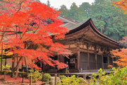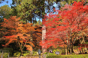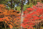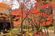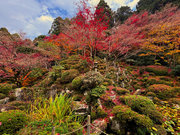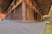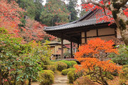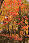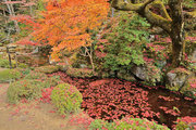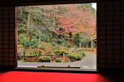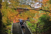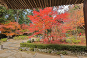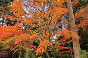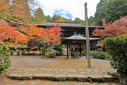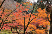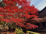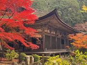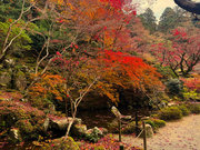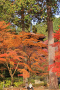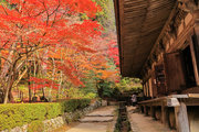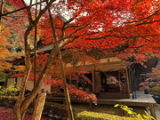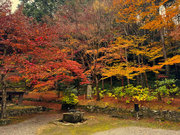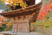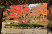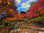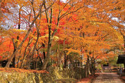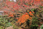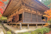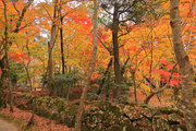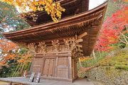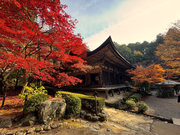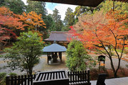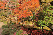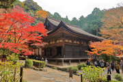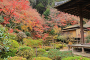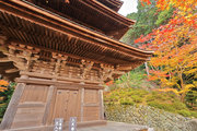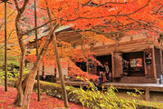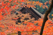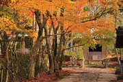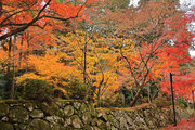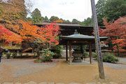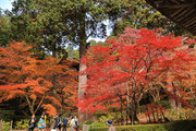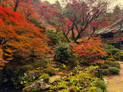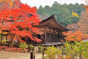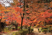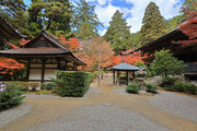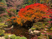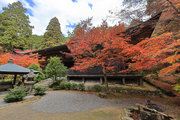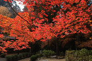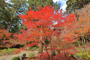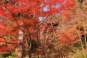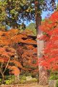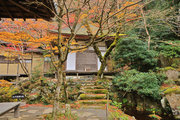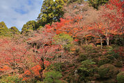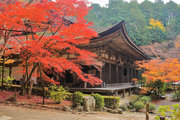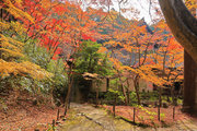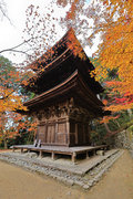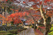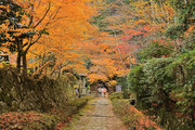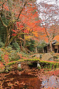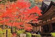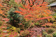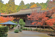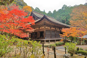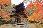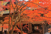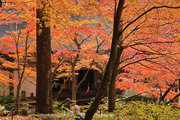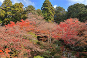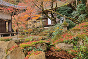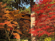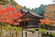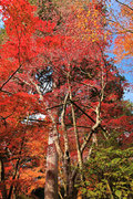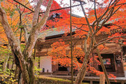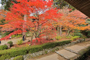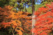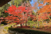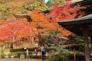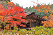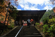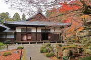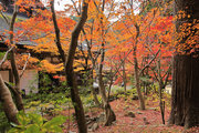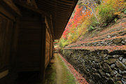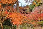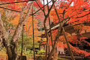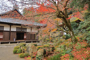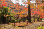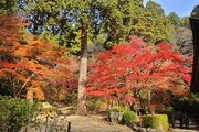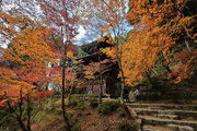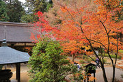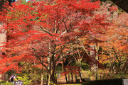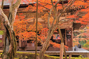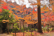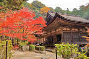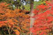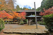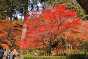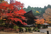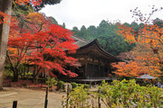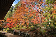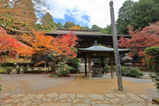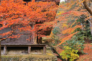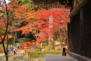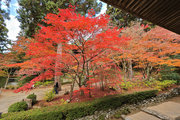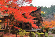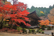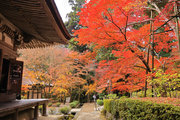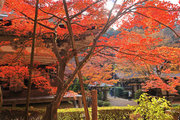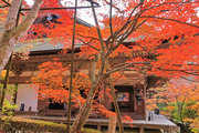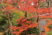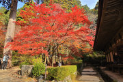 本堂横の紅葉は「血染めの紅葉」と呼ばれ、朱色の鮮やかさで有名である。