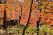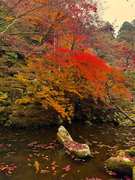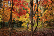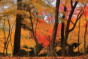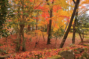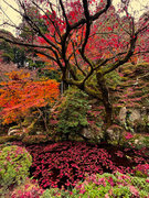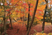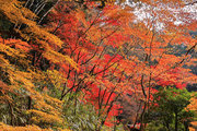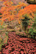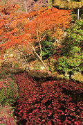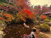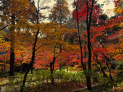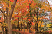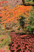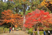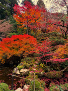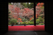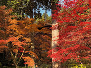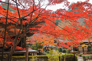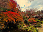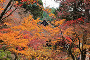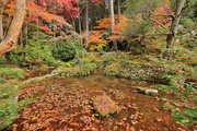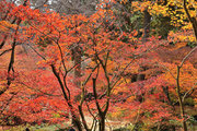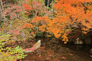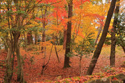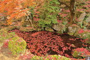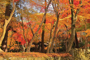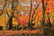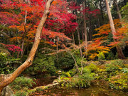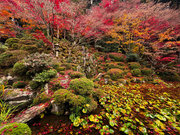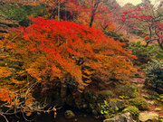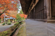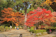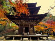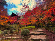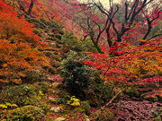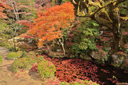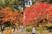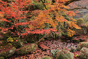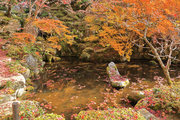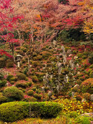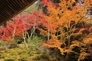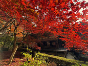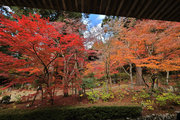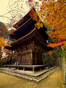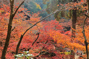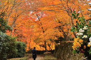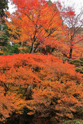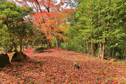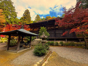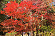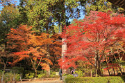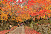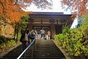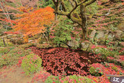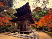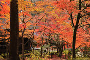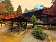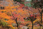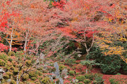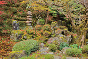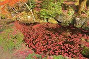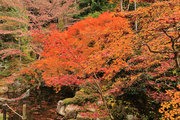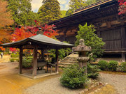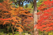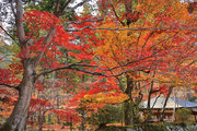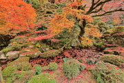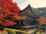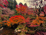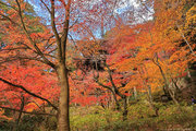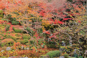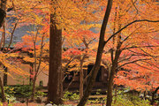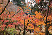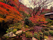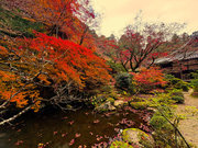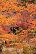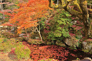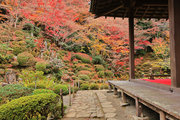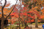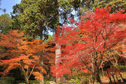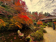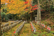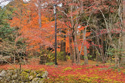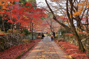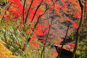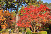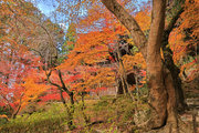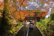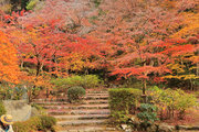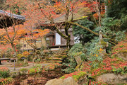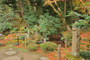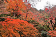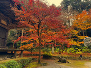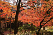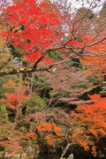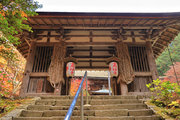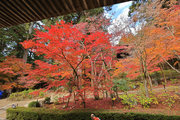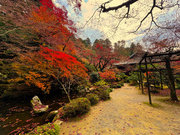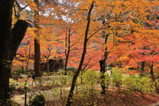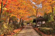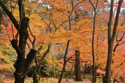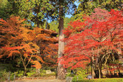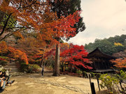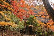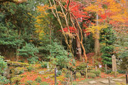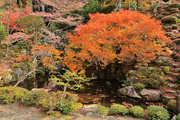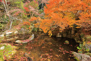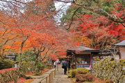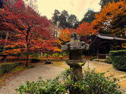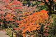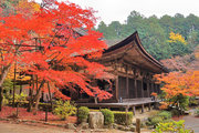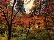本堂横の紅葉は「血染めの紅葉」と呼ばれ、朱色の鮮やかさで有名である。