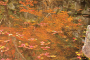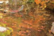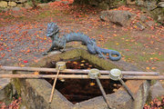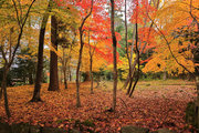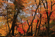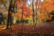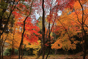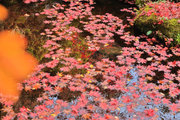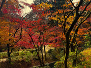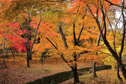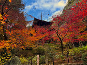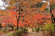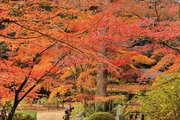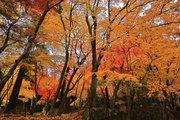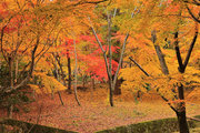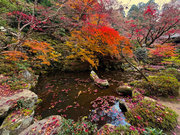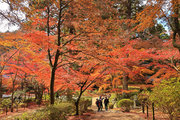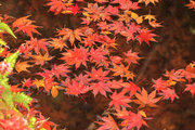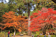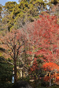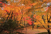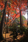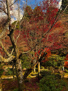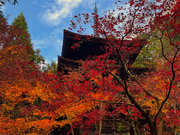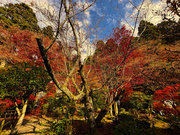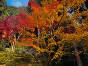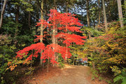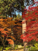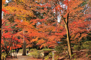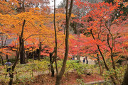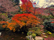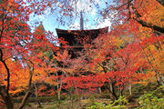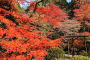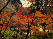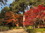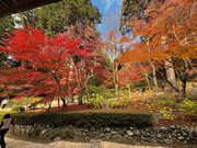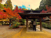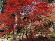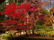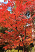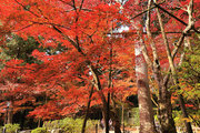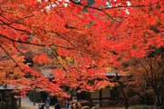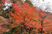 境内の紅葉はもう終わりを迎えている。わずか残った枝葉が陽ざしに照らし出されて輝いていた。燃える最後の舞台を演出していた。