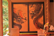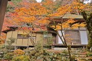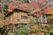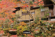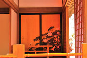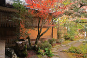 参道の左側奥に建つ。楓にかこまれ静かである。食事を提供している。