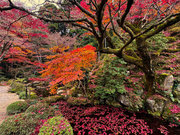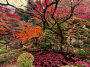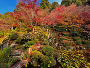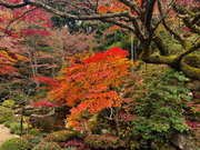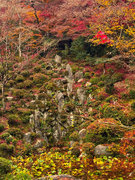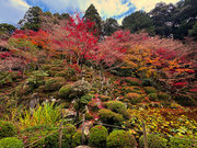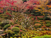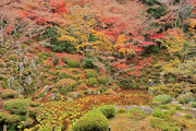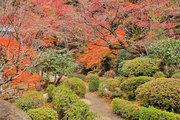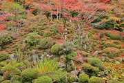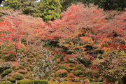 石の巧みな配置、多種の刈り込み、借景など四季の変化に富んでいる。