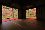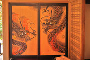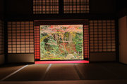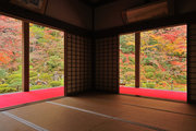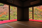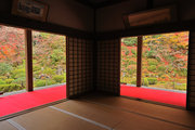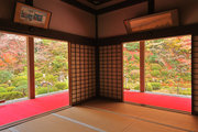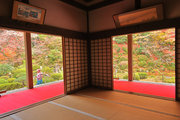 この茶室は文政3年(1830)年往持光格僧都のときに建立された。茶室の天井格子には、四季の草花36種類が描かれているようで、茶室の雰囲気をより趣きのあるものにしているとのこと。