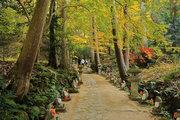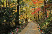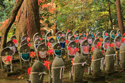 ■参道周辺 千体地蔵が真新しい前掛けを掛けてもらって迎える。