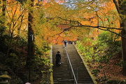 惣門から約400mの参道を登りつめて、最後の45段の急な石段をあがったところに建っている。