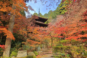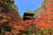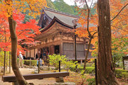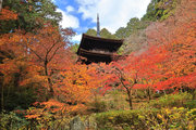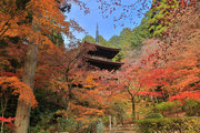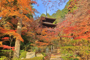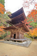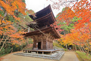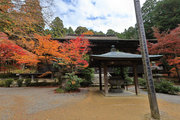 全山に楓の木が多く、紅葉のシーズンは最高の景観を呈するが、青葉の頃も堪らなく清々しい。寺伝では、天平13年(741)に行基が開祖した聖武天皇の勅願寺で、いまも伽藍の本堂を「天平大悲閣」と呼んでいる。