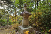 石造宝篋印塔が南庭の池泉にかけられた自然石の橋を渡った所にある。