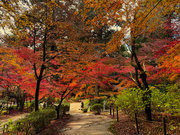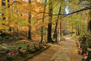 さらに参道をすすむ。紅葉が美しい。まもなく本坊となる。