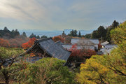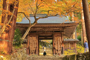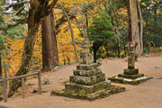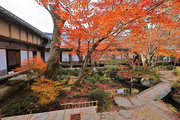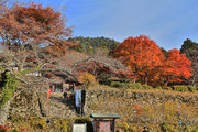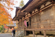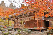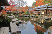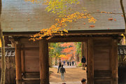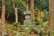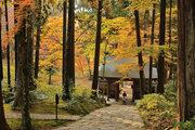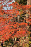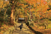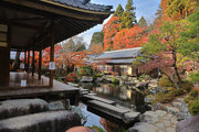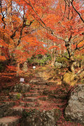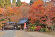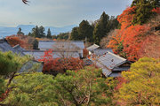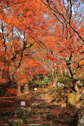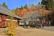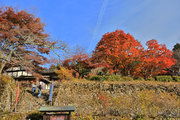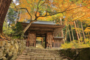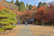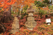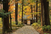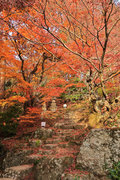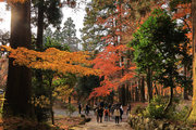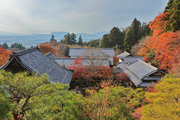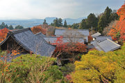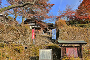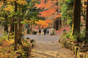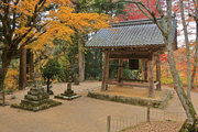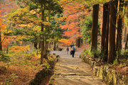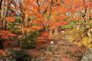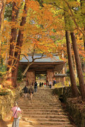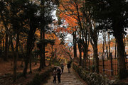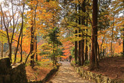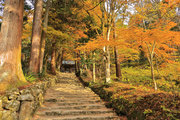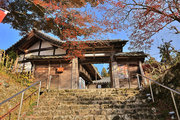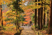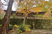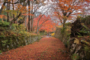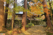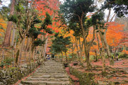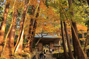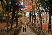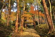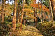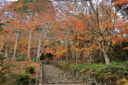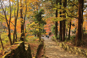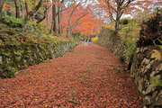 織田信長の兵火で一山は焼失したが、参道や石垣がかつての規模の大きさを物語っているようだ。両側の紅葉が美しい。
