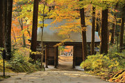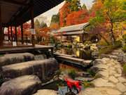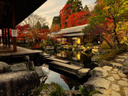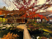 「大原三千院・高雄神護寺・奈良談林寺・奈良長岳寺」 山門から50m程行くと「五の谷川」にかかる赤い極楽橋に出会う。橋の手前を「此岸」、渡りきると「彼岸」といわれる。