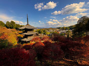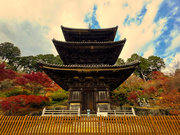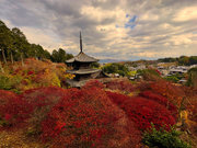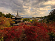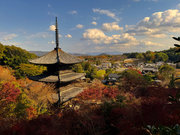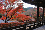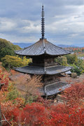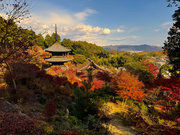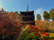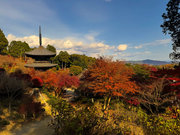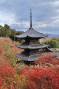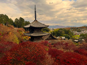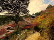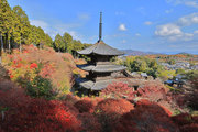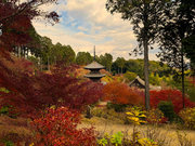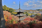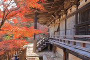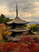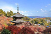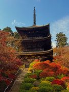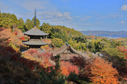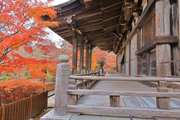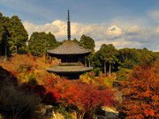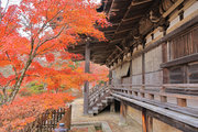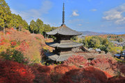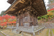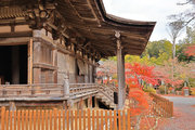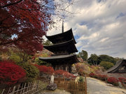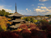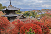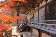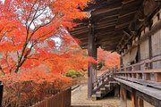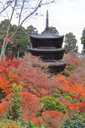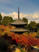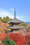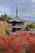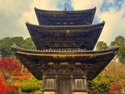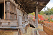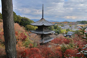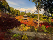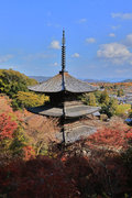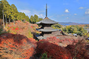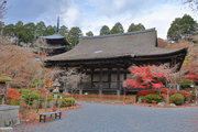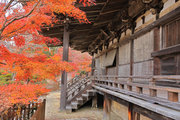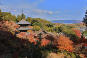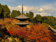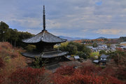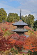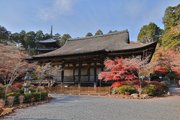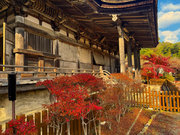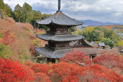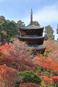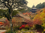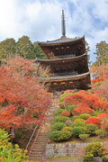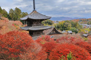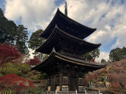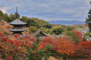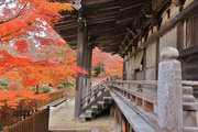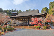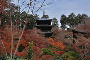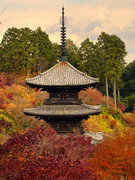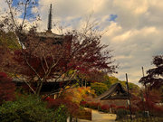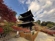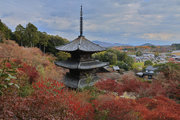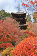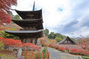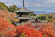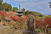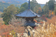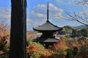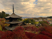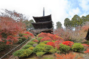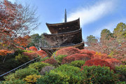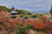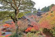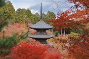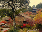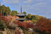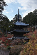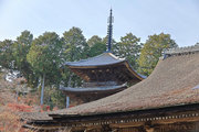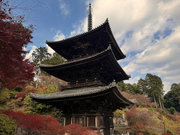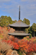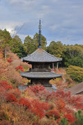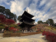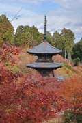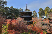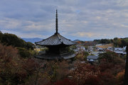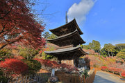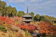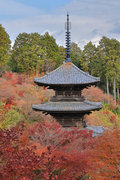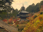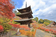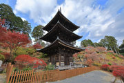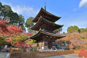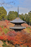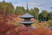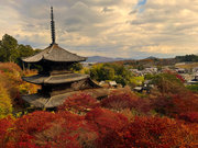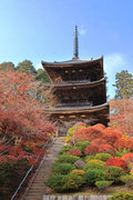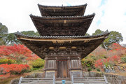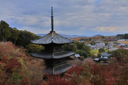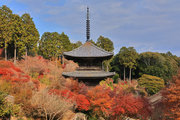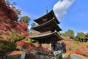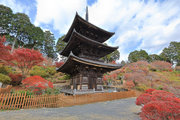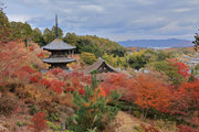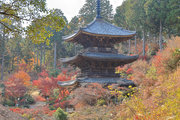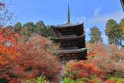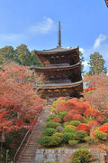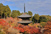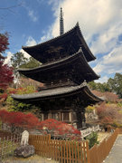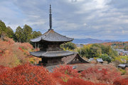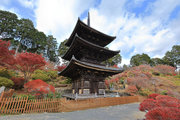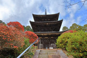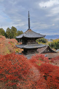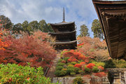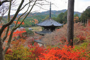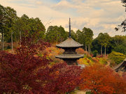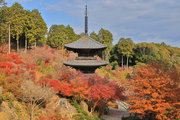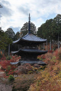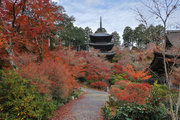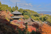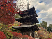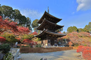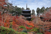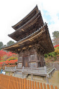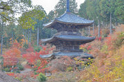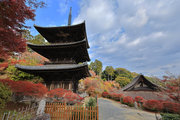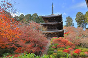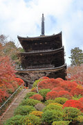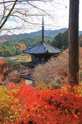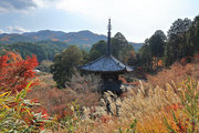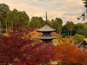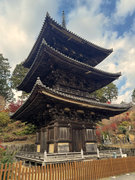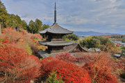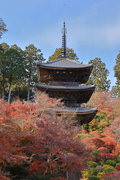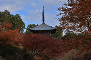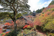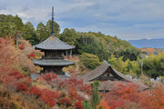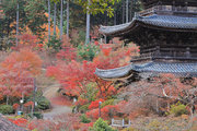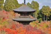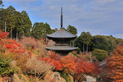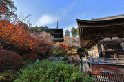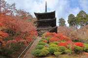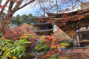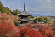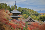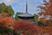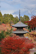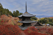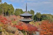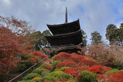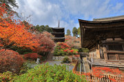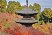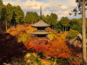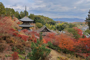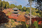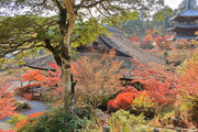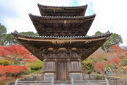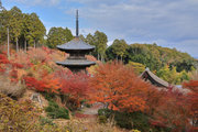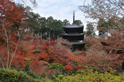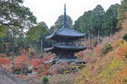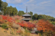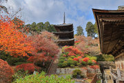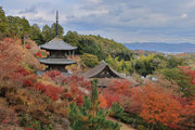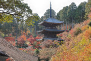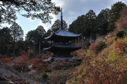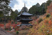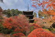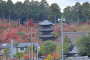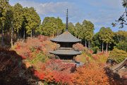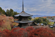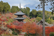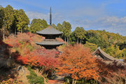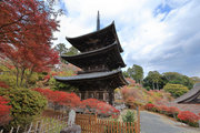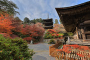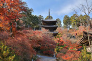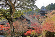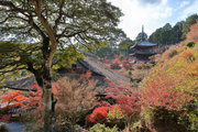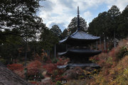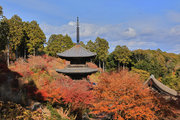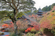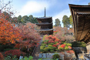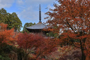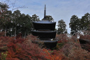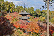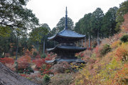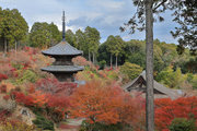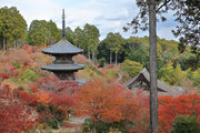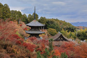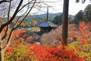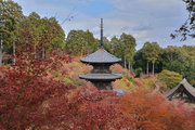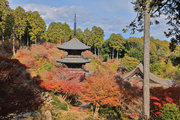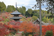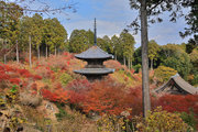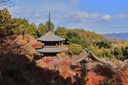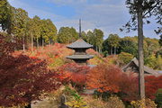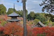 少し登りもある。一番高い所からは、三重塔や本堂を見下ろすことになる。紅葉に彩られた木々が堂や塔と重なって織り成す景色は