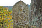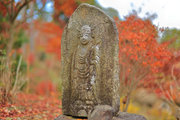 山裾の小道には西国三十三霊場の観音石仏が立ち、お参りを待っている。