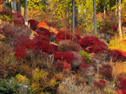 御住職が切り開かれた道を登るとドウダンツツジが真っ赤になっていました。