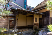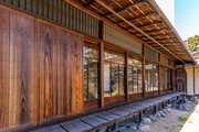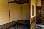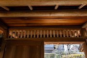 一間腕木門、寄棟造、檜皮葺、両袖塀及び腰掛待合付